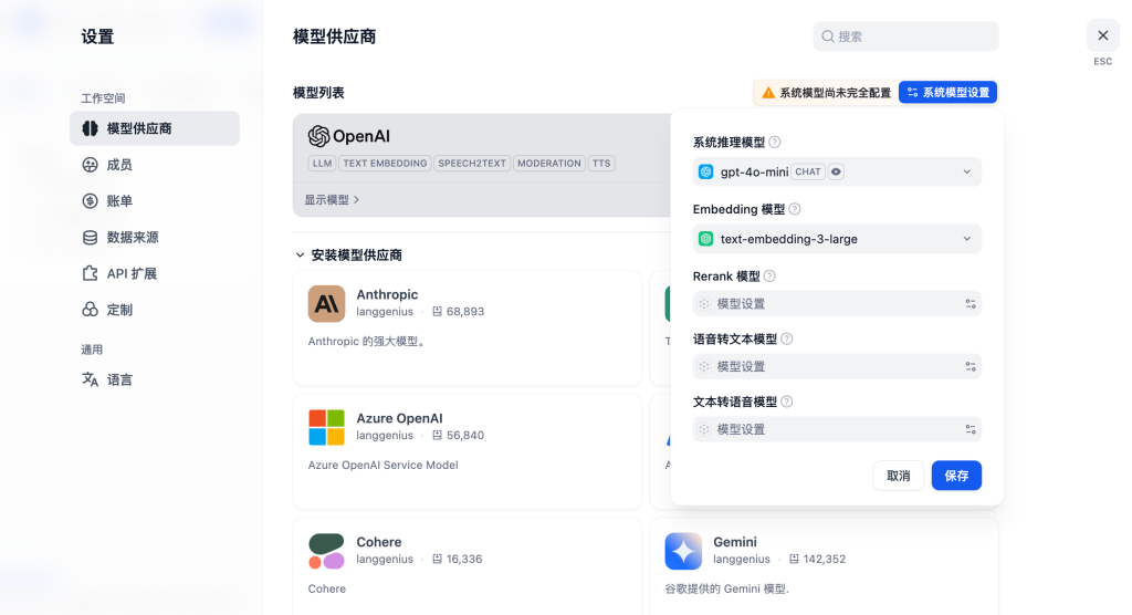- 您也可以跳过设置,使用默认的最新 gpt-4o-mini 模型作为系统推理模型,但您将只有 200 个单词的 Token 可用,用于试用。