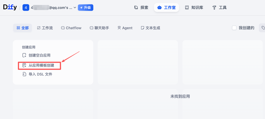 在导航菜单中选择“工作室”,然后在应用列表中选择「从应用模板创建」。