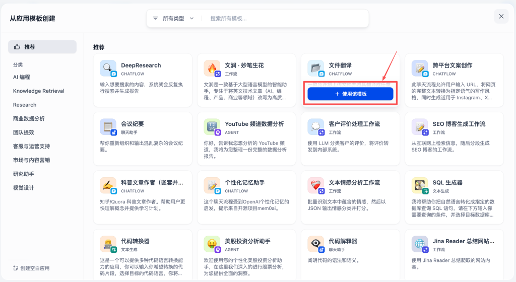 首次使用 Dify 时,您可能不熟悉如何创建应用。为了帮助新用户快速了解如何在 Dify 上构建应用,Dify 团队的提示工程师已经为多种场景创建了高质量的应用模板。