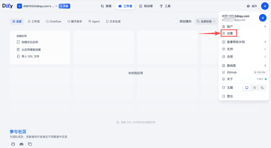 - 注册 Dify Cloud 并创建一个新的 Workspace 或加入现有的 Workspace。